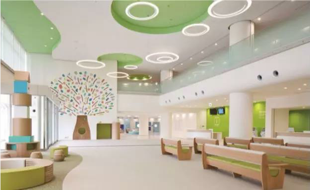 照明 醫(yī)療空間也需要充足的采光。為了使患者更加貼近自然,無(wú)論是通風(fēng)設(shè)計(jì)還是照明設(shè)計(jì),醫(yī)院都應(yīng)該最大限度地利用自然資源。一是保持最佳的建筑采光,使自然光線能照亮人員經(jīng)常停留的空間;二是采用自然光調(diào)控設(shè)施,改善室內(nèi)的自然光分布;三是保持良好的視野,充分利用自然通風(fēng),合理設(shè)置通風(fēng)口,有效組織氣流,減少裝飾材料對(duì)室內(nèi)空氣質(zhì)量的影響。