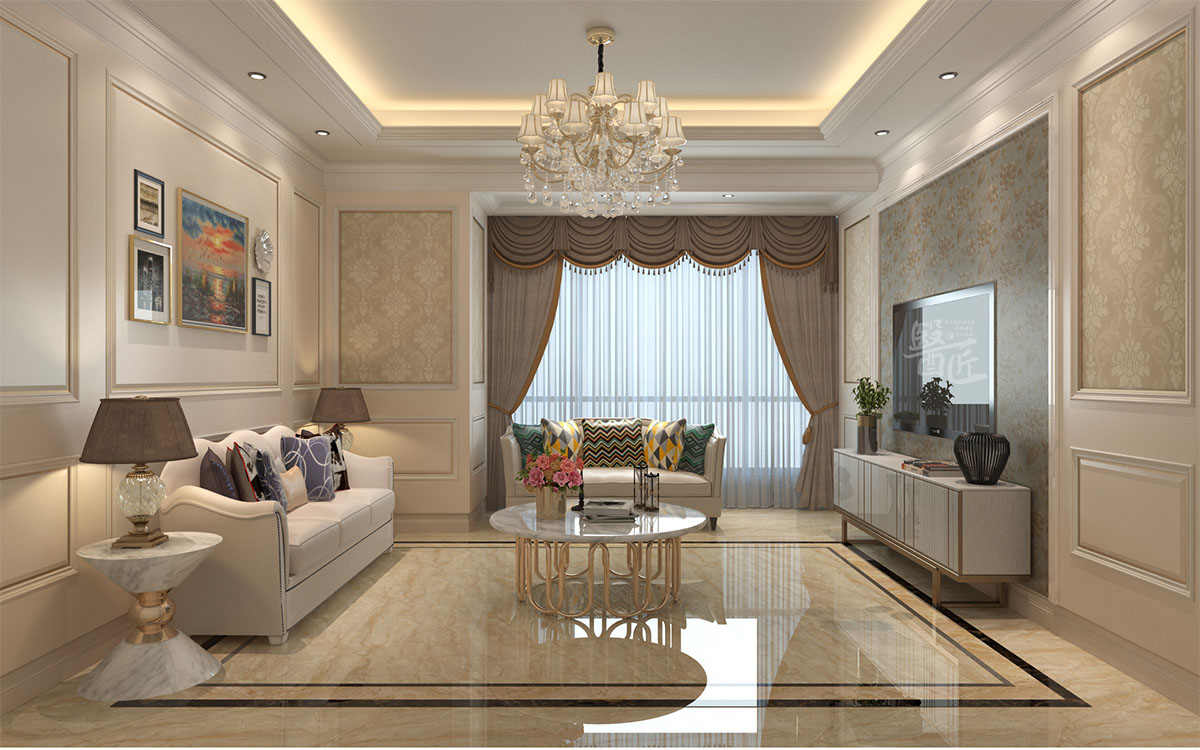 空間色彩能夠在第一時間影響人的情緒體驗,我們結(jié)合當(dāng)代人的審美特點(diǎn),綜合考量了色彩的藝術(shù)特質(zhì)和“人”的體驗感受特質(zhì)??臻g軟裝陳設(shè)在理性秩序中體現(xiàn)藝術(shù)品味,糅合古典元素的當(dāng)代藝術(shù)符號讓空間迸發(fā)出鮮活的美學(xué)力量,奶白色自然親和平衡著人的內(nèi)在情緒,搭配相對明亮的黃、綠、灰紫等家具顯示出時尚氣息。整個空間介于傳統(tǒng)與現(xiàn)代之間,獨(dú)特個性,別致而耐咀嚼。